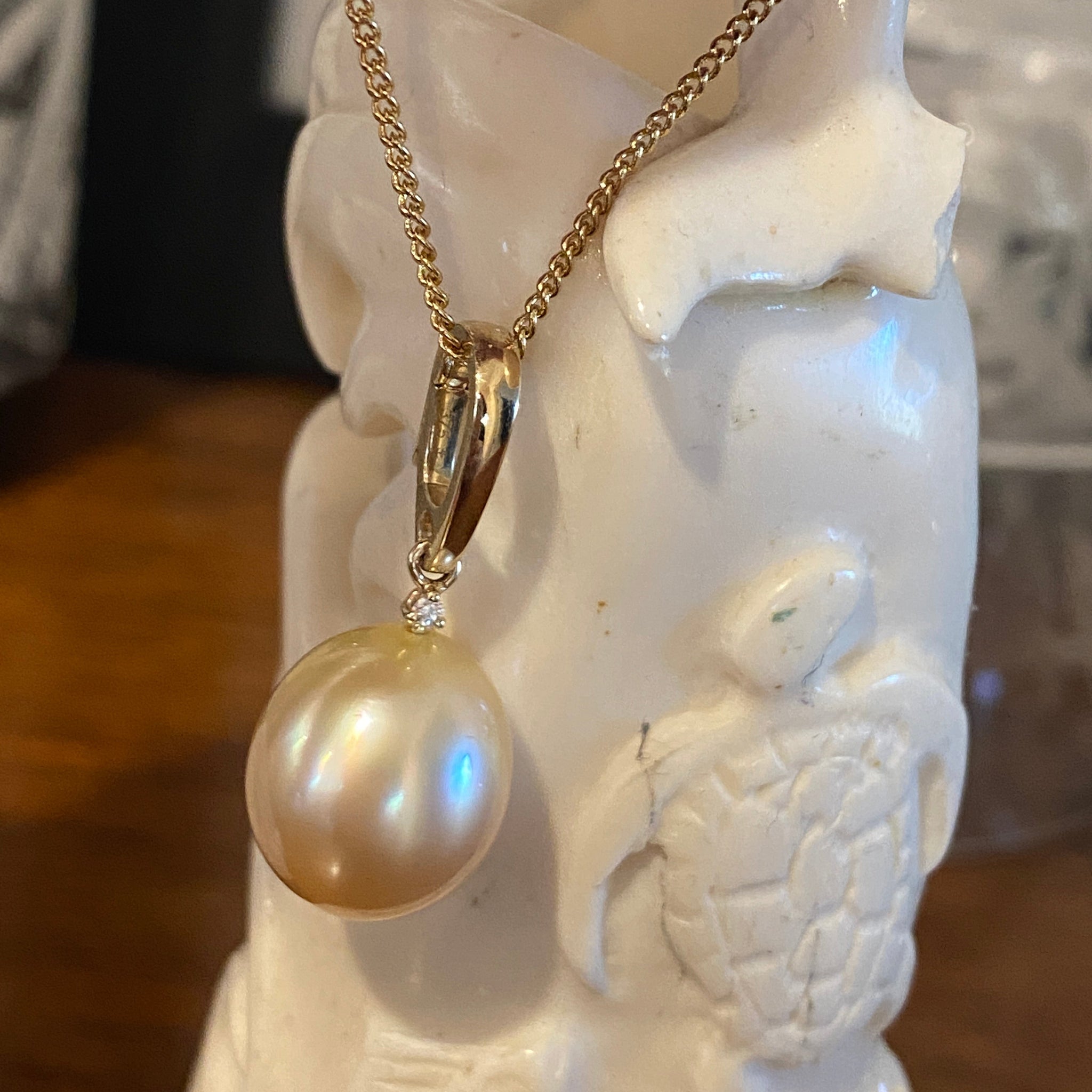This pendant enhancer is 9ct yellow gold and features a deep golden South Sea pearl which compliments the gold