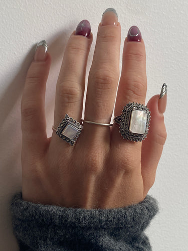 'Marcazite and Diamond shape Mother Of Pearl Ring
