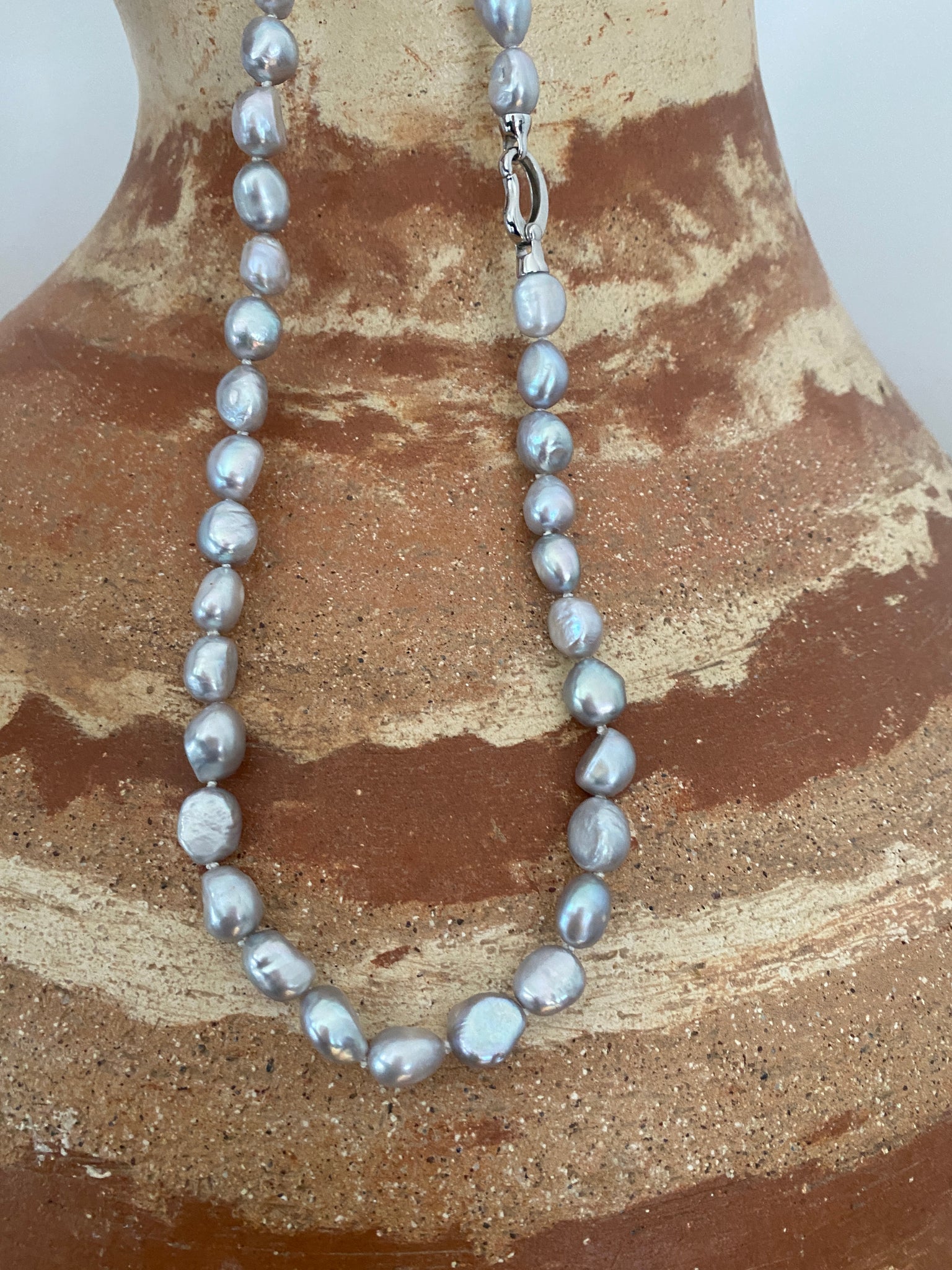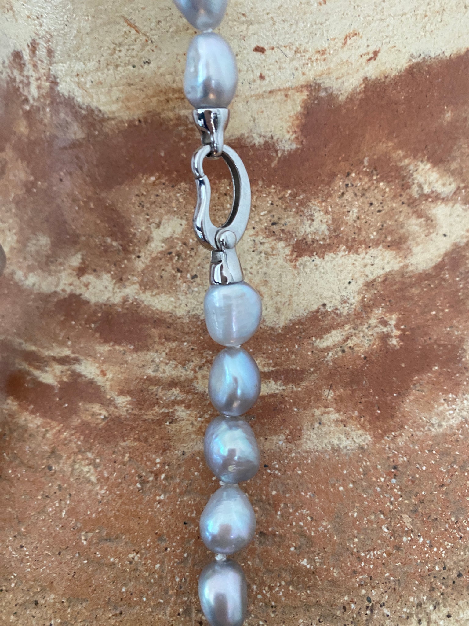 This stunning grey pearl strand is such a versatile color that goes with everything.