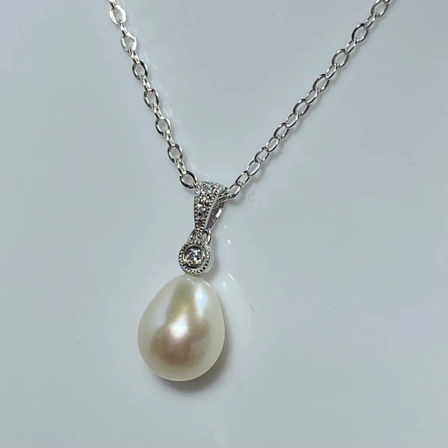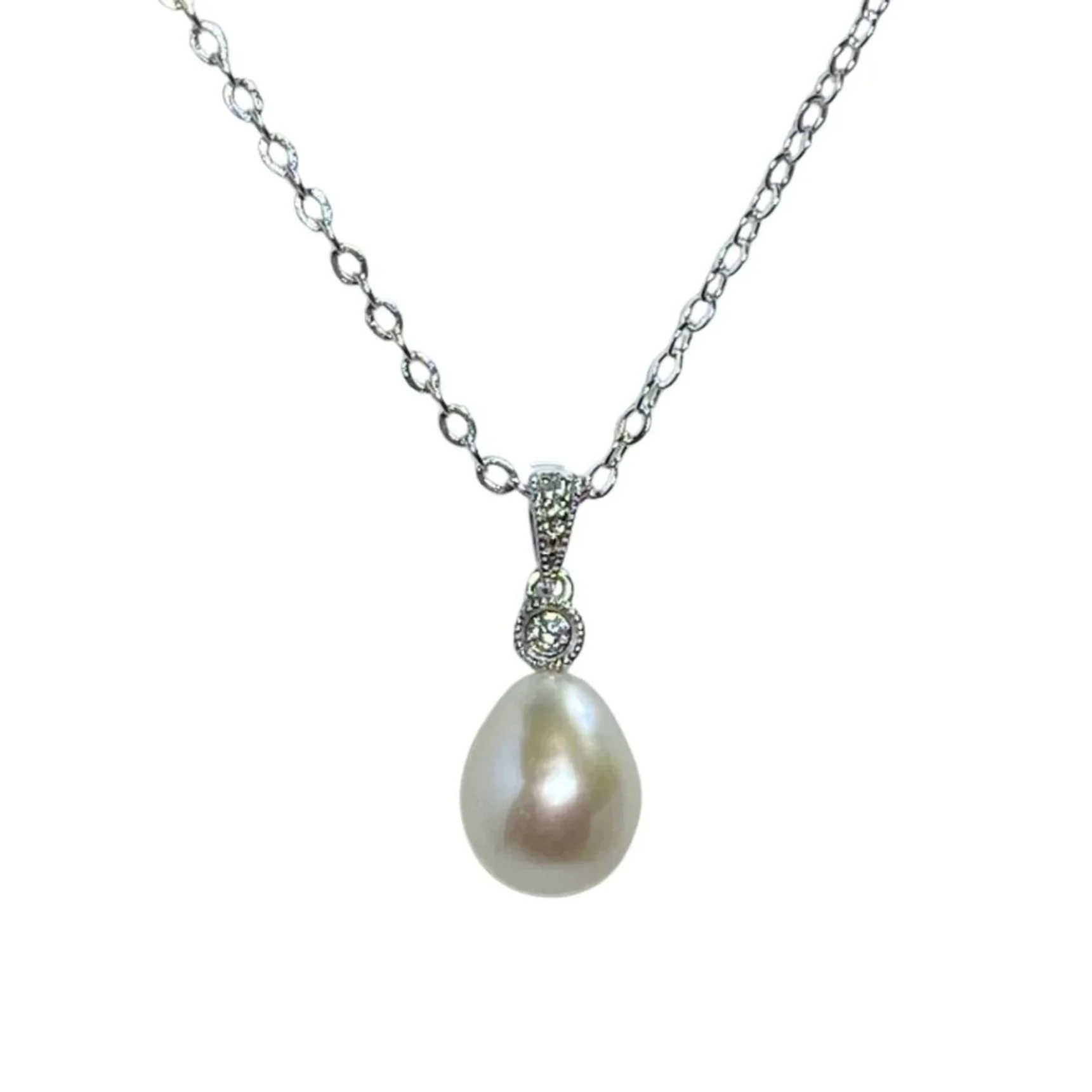 Sterling Silver Pendant featuring a Drop Shape Pearl, White in Colour, and 8mm in size