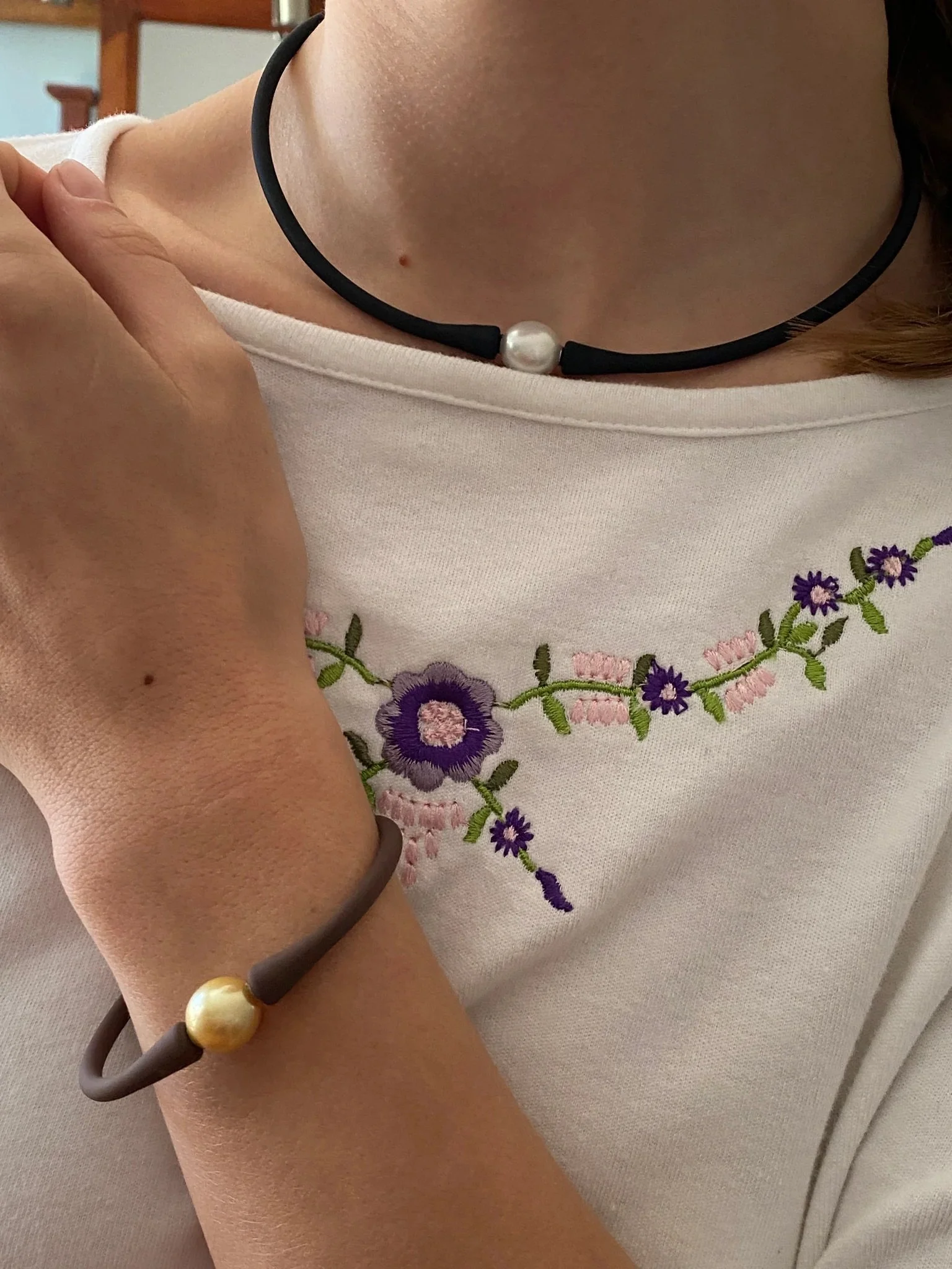 This pearl comes with the black necklace band unless you specify an alternative