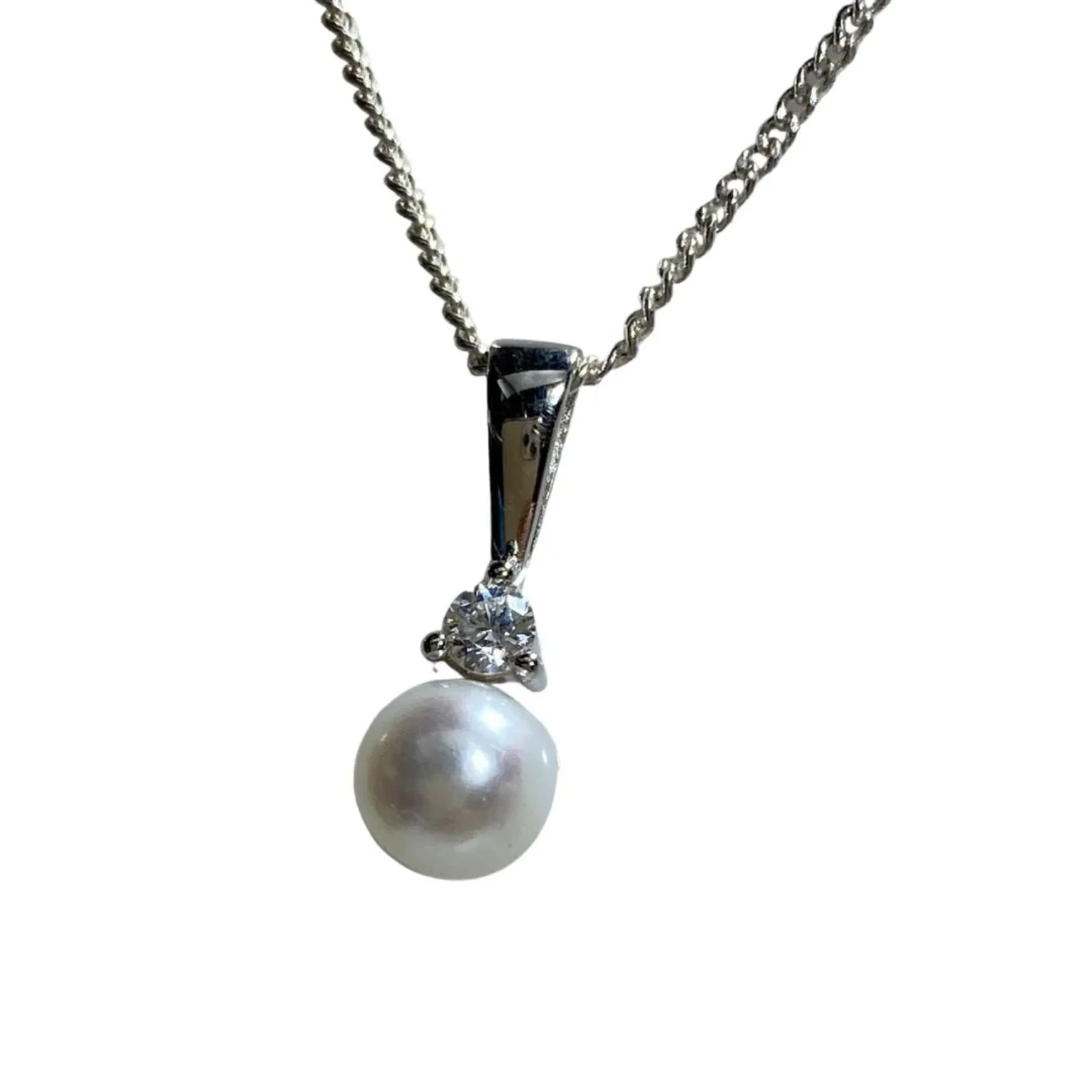 Image 1 of 1 'Shila' Freshwater pearl pendant $35.00 Custom Order: We hand-craft every piece to order, so please add your email address below and we'll be in touch as soon as possible (price may vary) Add To Cart Added! Sterling silver pendant featuring a 6.5mm White Button Shape Freshwater Pearl and a single claw set cubic zirconia. Sterling silver pendant featuring a 6.5mm White Button Shape Freshwater Pearl and a single claw set cubic zirconia. Reviews Reviewer Name Review Date Star Rating Description Posted on Etsy Product Show More